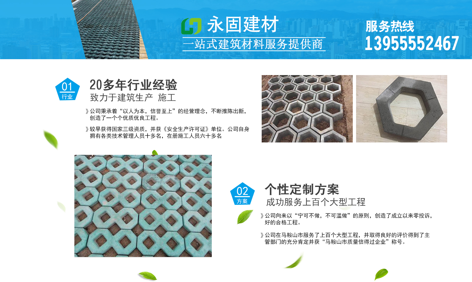 馬鞍山市永固建材有限公司,成立于一九九六年六月。公司秉承著“以人為本,信譽至上”的經營理念,不斷推陳出新,創造了一個個優(yōu)良工程。較早獲得國家三級資質,并獲《安全生產許可證》單位。公司自身擁有各類技術管理人員十多名,在冊施工人員六十多名,公司向來以“寧可不做,不可濫做”的原則,創造了成立以來零投訴,好的合格工程。得到了主管部門的充分肯定并獲“馬鞍山市質量信得過企業”稱號。我們從戰(zhàn)略高度審視市場,創造性開展各項工作,在建筑裝飾行業中,力爭做到人無我有,人有我精,在保證硬件實施的同時,注重軟件環(huán)境的建設,按現代企業制度的要求,樹立誠信的企業理念,推進企業的管理向系統化、正規(guī)化、制度化邁進;為創造好的企業、優(yōu)異的效益、好的管理打下堅實的基礎。我們把企業的發(fā)展、回報客戶和社會當做首要務,我們追求優(yōu)良品質,將以至誠至美的團隊協作精神誠信服務,竭誠為廣大客戶提供完善的服務。